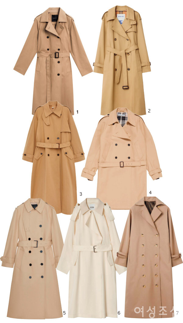 1 클래식한 베이지 컬러와 절제된 디테일이 돋보이는 트렌치코트. 39만9000원, 마시모두띠.