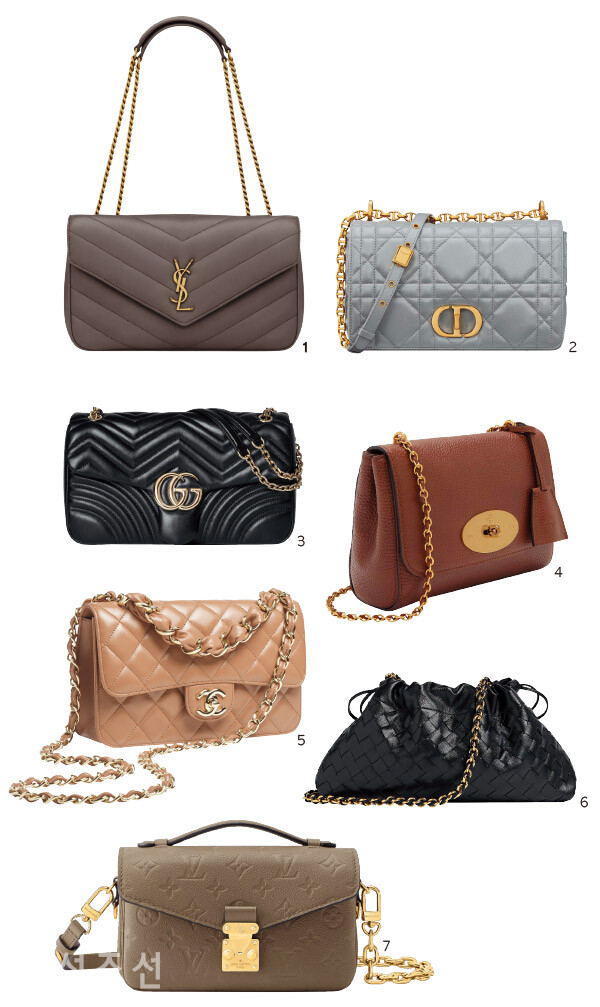하나쯤 소장하고 있으면 계절과 상관없이 활용할 수 있는 체인백. 특히 가을에는 포멀한 셋업 룩에 포인트를 더해주는 역할을 한다. 샤넬부터 보테가 베네타까지, 체인백은 브랜드 아카이브 속에서도 늘 중심에 있다. 작은 사이즈라면 주얼리처럼, 미디엄 사이즈라면 데일리 백으로 손색없다. 올가을에는 골드 체인과 레더 조합이 클래식하면서도 세련된 분위기를 완성한다.