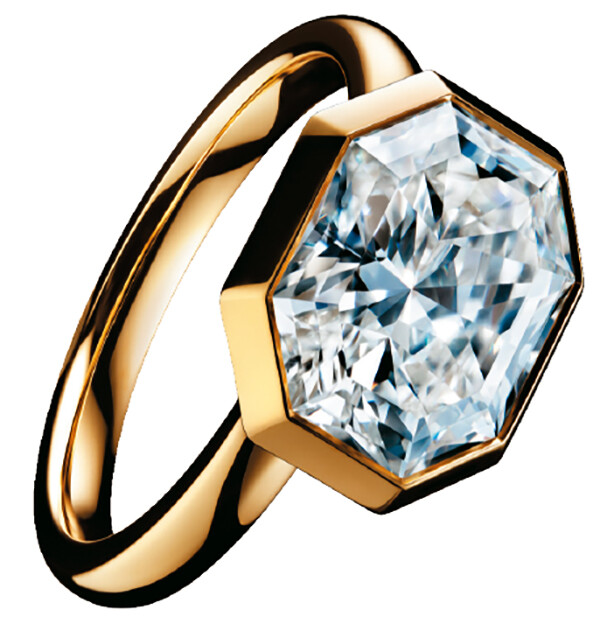 옥타곤, 스와로브스키 국제보석연구소 IGI의 인증을 거친 최고 품질의 랩다이아몬드로, 브랜드 시그니처인 옥타곤 형태의 옐로 골드 밴드에 3캐럿 다이아몬드가 세팅됐다. 정밀한 컷으로 극대화된 광채를 내뿜는 링. 970만원.