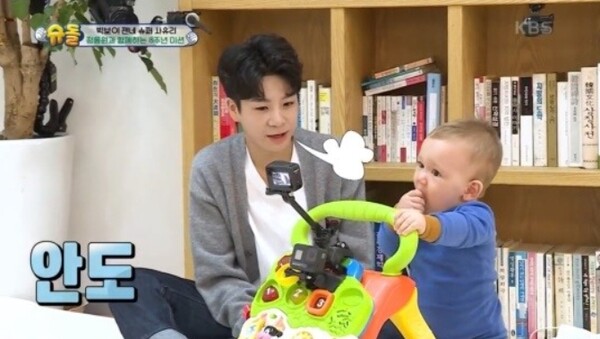 정동원이 ‘슈퍼맨이 돌아왔다’에 출연, 사유리의 아들 젠 돌보기에 나섰다. 지난 7일 공개된 ‘슈퍼맨이 돌아왔다’에 출연한 정동원은 사유리와 젠의 노래 선생님으로 찾아와 시청자들의 이목을 집중시켰다. 이는 ‘슈돌’ 8주년을 맞이해 재능기부를 하기 위한 것으로, 사유리는 정동원과 함께 새로운 뮤직비디오를 촬영해 조회 수만큼 기부하기 미션을 진행했다.