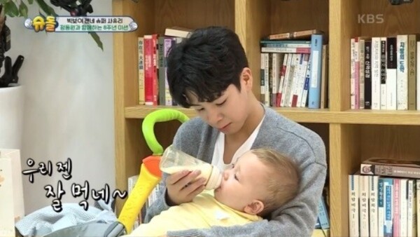 하지만 기저귀 가는 모습을 본 정동원은 충격에 휩싸였다. 그는 차마 아기의 응가를 보지 못하고 괴로워했다. 이어 재빨리 젠의 응가를 치운 사유리는 "괜찮아요? 많이 놀랐죠?"라며 “남의 똥 본 적 없어요?"라고 물었다. 이에 정동원은 "개똥 말고는 본 적이 없다"라고 말해 웃음을 안겼다. 젠이 3번째 연속 똥을 싸자 정동원은 멘붕에 빠졌고, 이를 갈기 위해 기저귀를 뺀 순간 젠이 또 똥을 싸 촬영장을 초토화시켰다.
