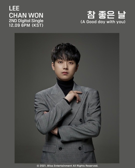 어제(29일) 오후 이찬원은 공식 SNS 계정을 통해 오는 12월 9일 발매되는 새 디지털 싱글 '참 좋은 날' 관련 이미지 사진을 업로드했다.